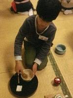 茶室でのあいさつ、姿勢の美しさと盆略点前を習いながら、茶室の中にある花や茶道具・茶器などに触れることで、日本の伝統文化のすばらしさを体験できる活動をしています。