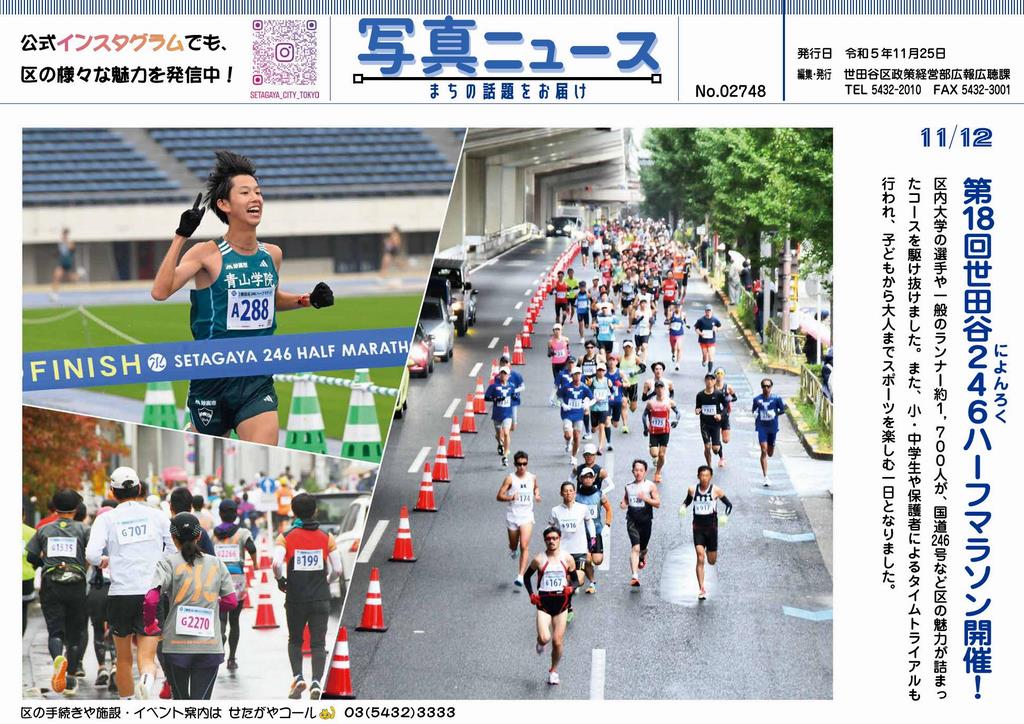 区内大学の選手や一般のランナー約1,700人が、国道246号など区の魅力が詰まったコースを駆け抜けました。また、小・中学生や保護者によるタイムトライアルも行われ、子どもから大人までスポーツを楽しむ一日となりました。