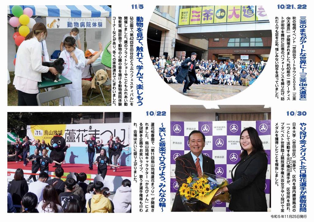 秋の恒例イベント「世田谷アートタウン2023『三茶de大道芸』」が開催されました。約40組の一流アーティストが街中を舞台に圧巻のパフォーマンスを繰り広げ、訪れた人々も足を止め、惜しみない拍手を送っていました。
