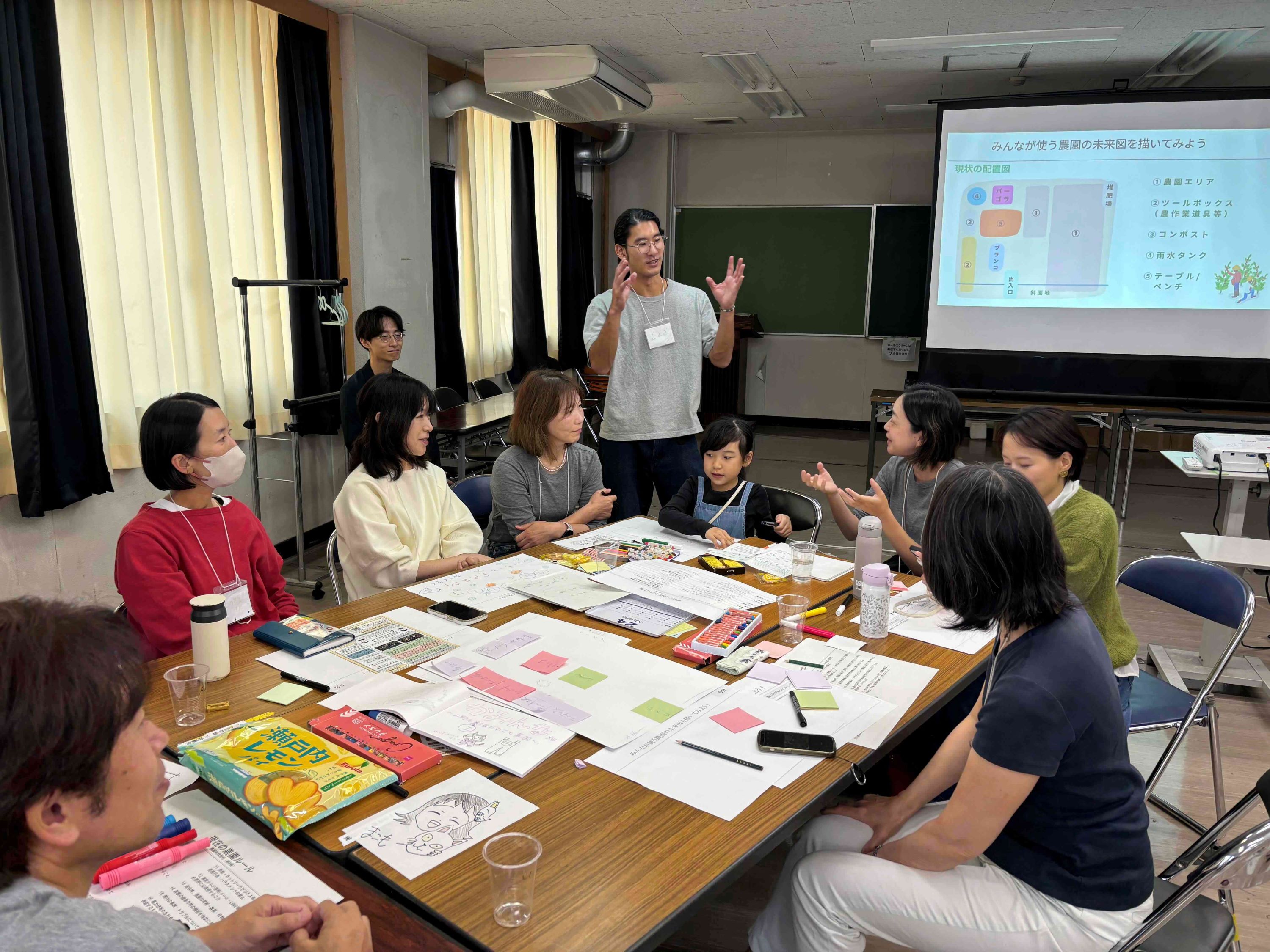 今回は、5月末に行った第1回キックオフ会で出された「どんな農園にしたいか」「農園名はどうするか」といったアイデアをもとに、それらを具体的な形にする場として企画しました。当日は10名の方にご参加いただき、活発な意見交換が行われ、とても有意義な時間となりました。地域の皆さんと一緒に育てていく農園の未来が、少しずつ形になってきています。