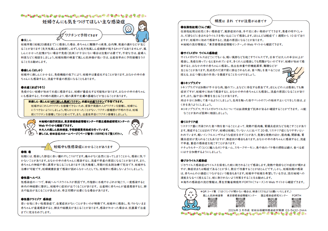 世田谷区トップページ > 福祉・健康 > 健康・保健・衛生 > 感染症 > その他の感染症 > 妊娠中に気を付ける感染症 > 妊婦さんにも気をつけてほしい主な感染症