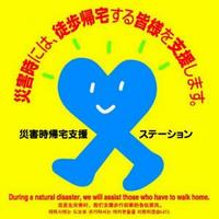 災害時、緊急・救助活動が落ち着いた後に帰宅困難者の徒歩帰宅を支援するため、水道水、トイレ、地図等による道路情報、ラジオ等で知り得た通行可能な道路に関する情報などを提供する施設です。