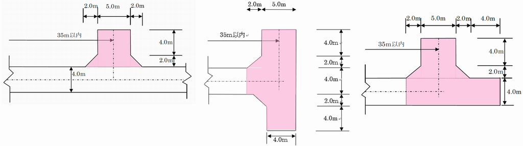 指定道路の延長が35メートルを超える場合、35メートルごとに転回広場が必要となります。