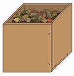 今回のプログラムでは、三宿の森緑地の一角に木の箱を置き、その中に落ち葉や枝を詰めてエコスタックを作りました。(※イラストはイメージです。)