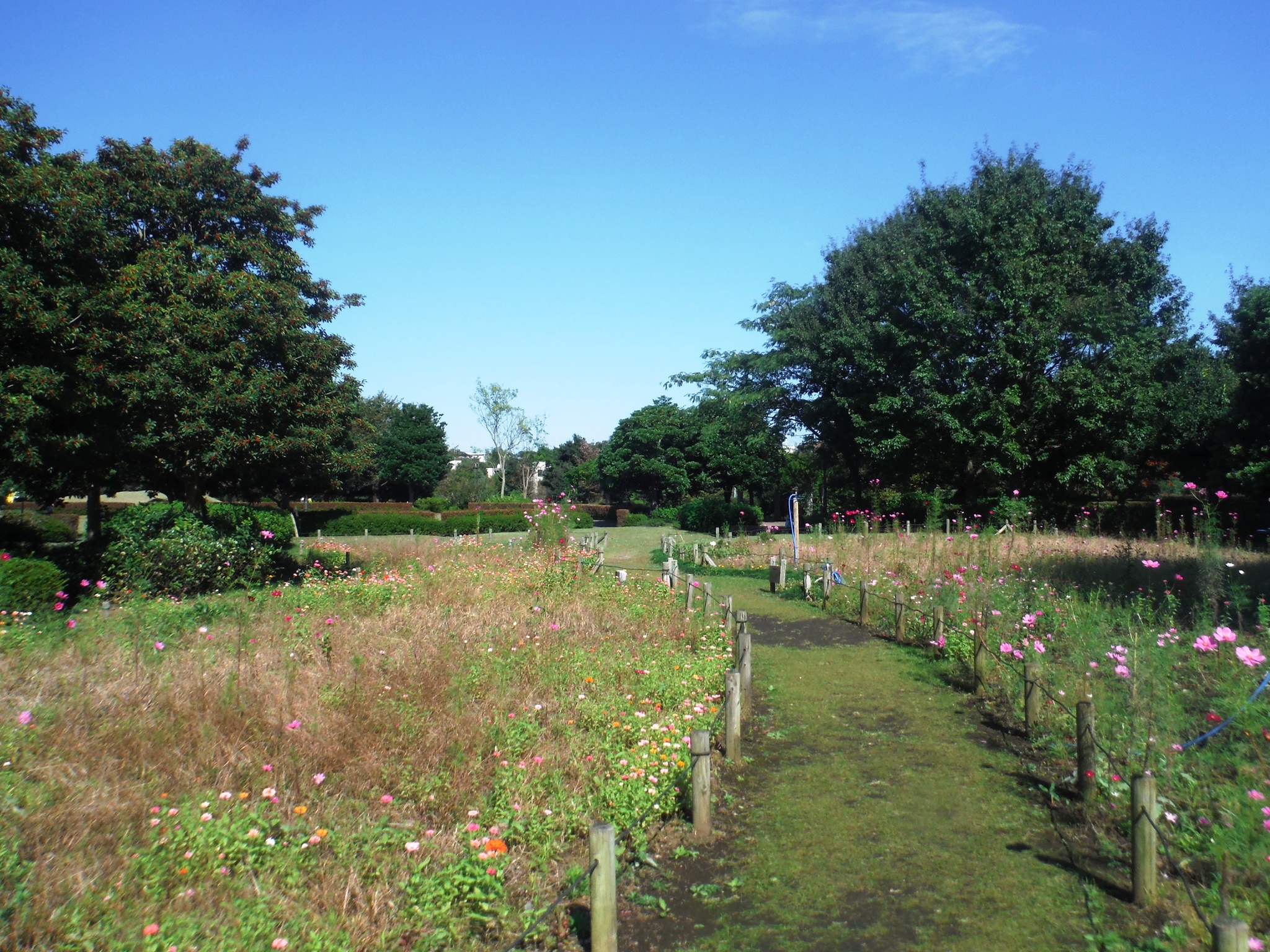 小田急線電車基地の上にある、人工地盤の公園です。地上10メートルの高さにあり、周りに建物が見えないので、見晴らしがよく、空の広がりを感じられる公園です。 |