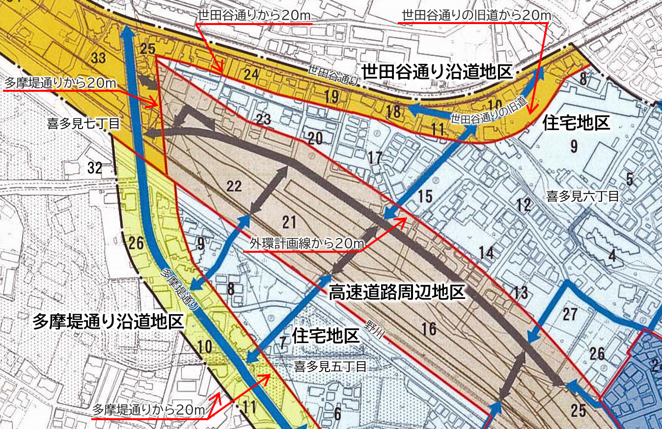 多摩堤通り沿道地区 世田谷通り沿道地区 |