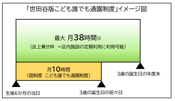 ※国の「こども誰でも通園制度」では、生後6か月から満3歳未満のお子さんを対象としていますが、「世田谷版こども誰でも通園制度」では、2歳児クラス年齢まで利用が可能です。