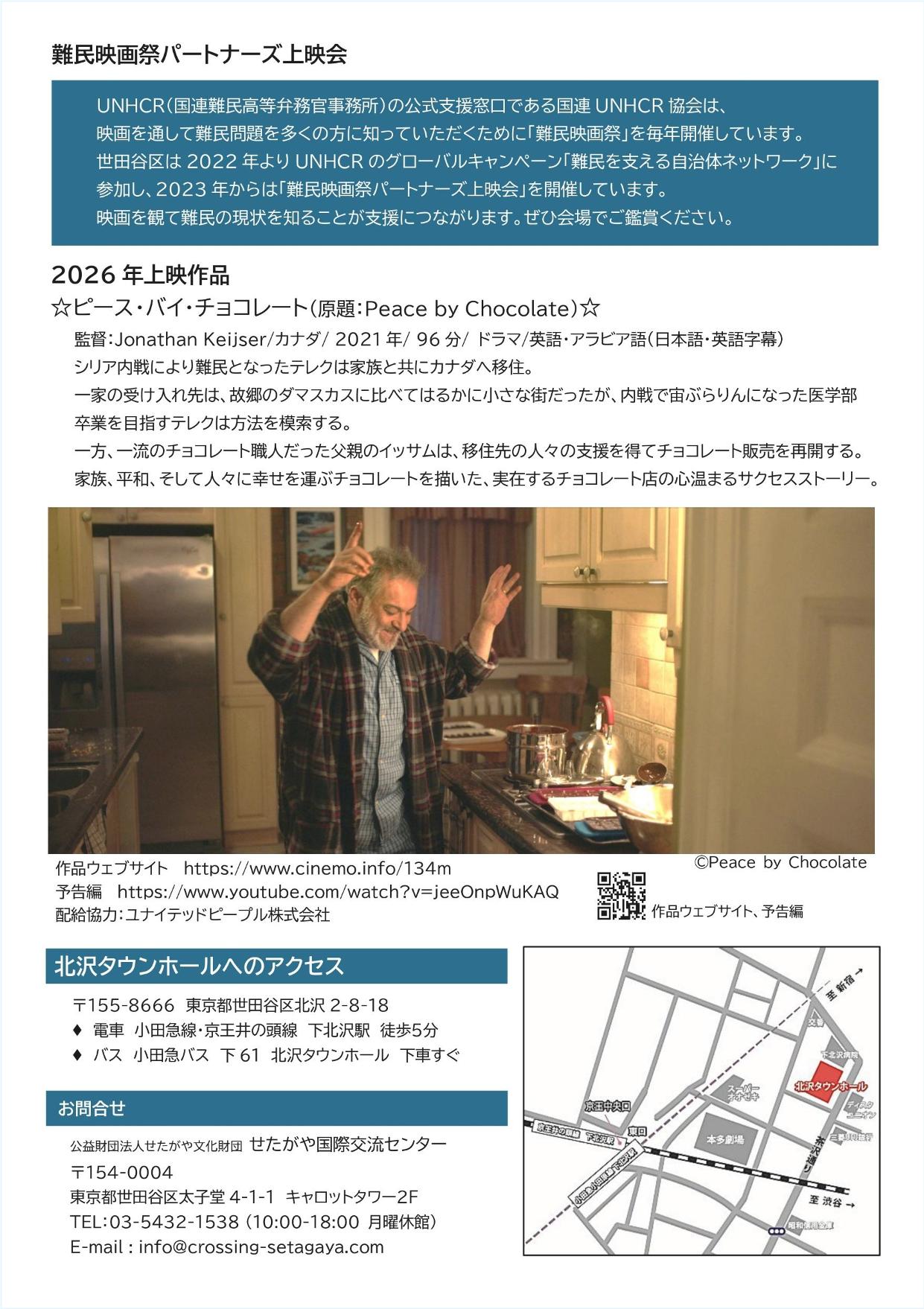 国連UNHCR協会(UNHCR:国連難民高等弁務官事務所)は、映画を通じて難民問題を多くの方に知っていただくために「難民映画祭」を毎年開催しています。世田谷区はUNHCRのグローバルキャンペーン「難民を支える自治体ネットワーク」に参加しており、難民映画祭パートナーズとして今年もドキュメンタリー作品の上映会を開催致します。映画を観て知ることが支援に繋がります。皆様のご参加をお待ちしています。