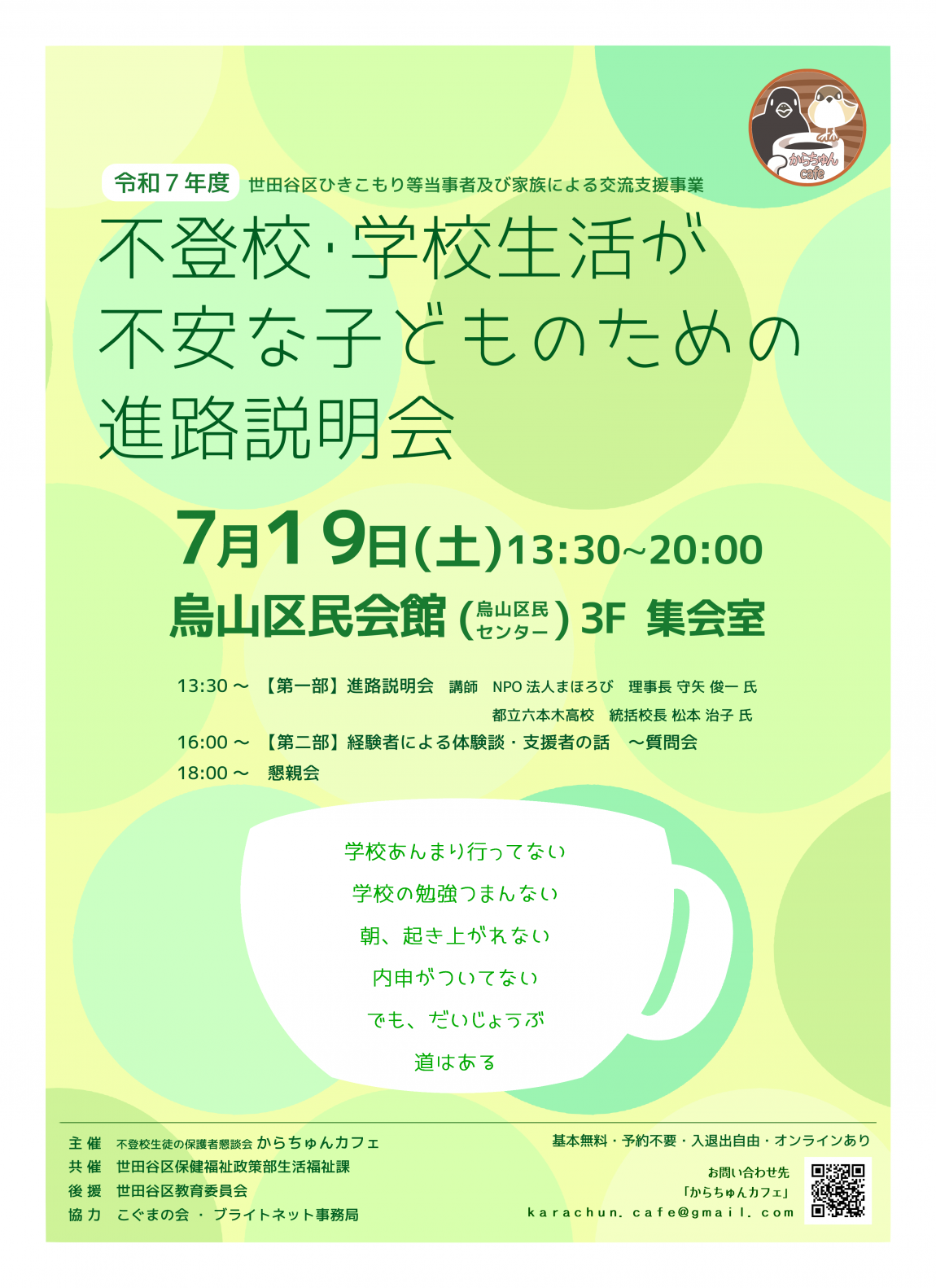 主催:不登校生徒の保護者懇談会 からちゅんカフェ