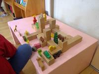 積み木にはたくさんの魅力があります。その積み木遊びで子どもたちは、様々なイメージを広げ構成遊びを楽しんでいます。数限りない子どもたちのイメージ。一人一人の想いを最大に引き出せるような活動を重ねています。毎日作っても毎回違う構成ができています。日々成長していく子どもたちと大切に保育を進めています。