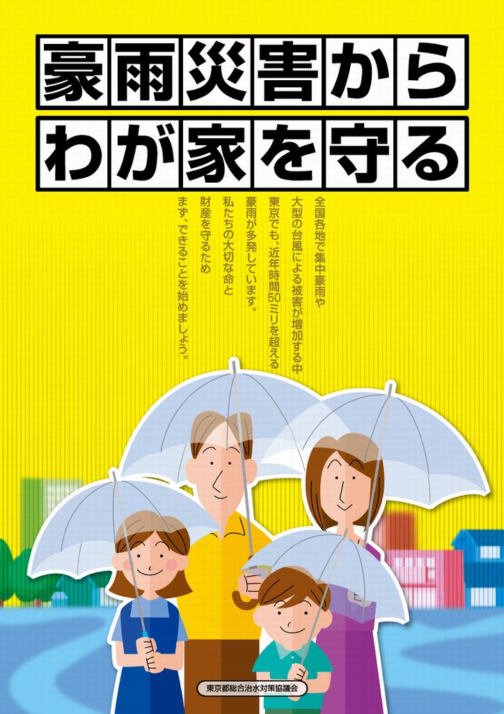 また東京都総合治水対策協議会では、個人住宅向け豪雨対策促進パンフレット「豪雨災害からわが家を守る」および、小学生向けの総合治水PRパンフレット「みんなで考えよう!水害に強いまちづくり」などを作成しております。