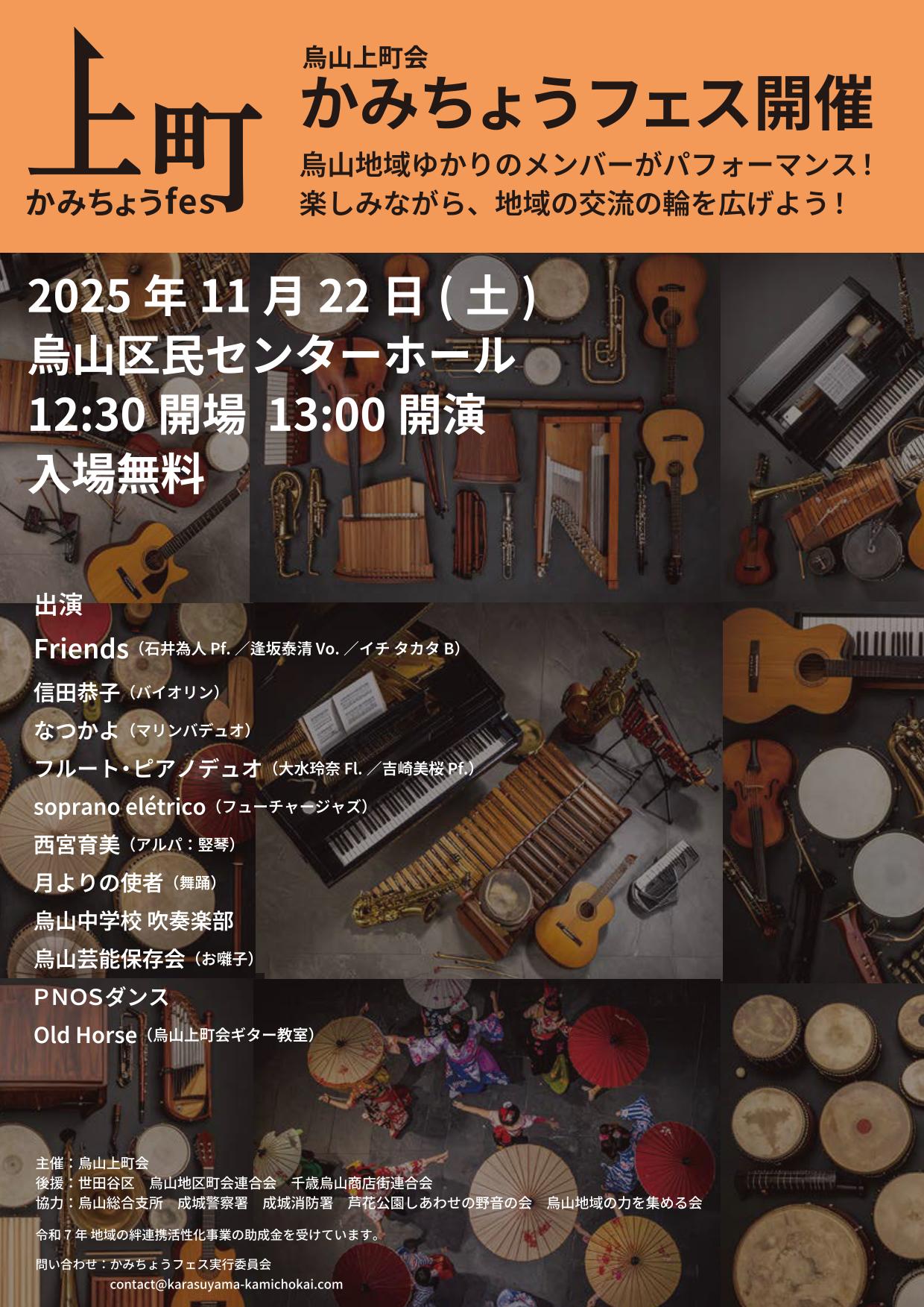 第1回ちとからまちづくりフォーラムで、烏山上町会所属の方がご発言されていた「まちをあげての音楽祭をしたい」が、この度様々な地域の人の協力のもと、実現することになりました!