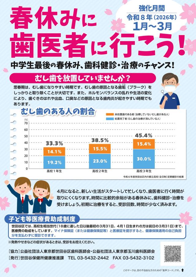 4月になると、新しい生活がスタートして忙しくなり、歯医者に行く時間が取りにくくなります。時間に比較的余裕がある春休みに、歯科健診・治療を受けましょう。初期に治療をすると、受診回数、時間が少なく済みます…