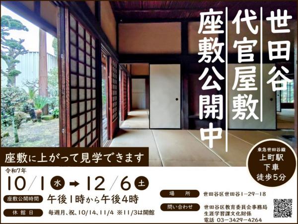 イベント 【10月1日から】世田谷代官屋敷の座敷を公開します 2025年10月1日から2025年12月6日